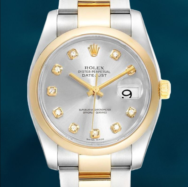 - Dial Markers: Diamonds.??The reason this watch is set with diamonds is because the dial markers are used to indicate the time instead of the usual Roman numerals.