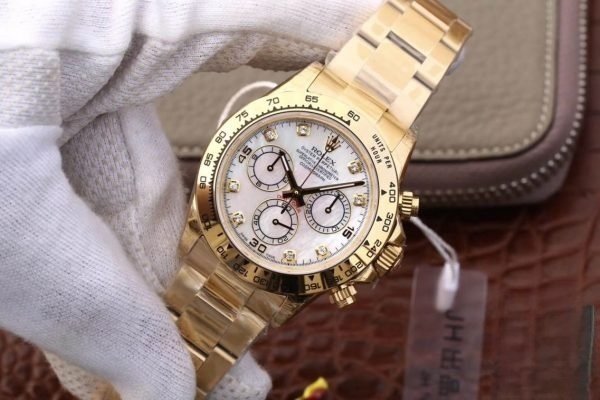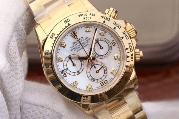 Rolex daytona cosmograph white dial 18k yellow gold 40mm swiss replica 116528.78598 is taken in kind.