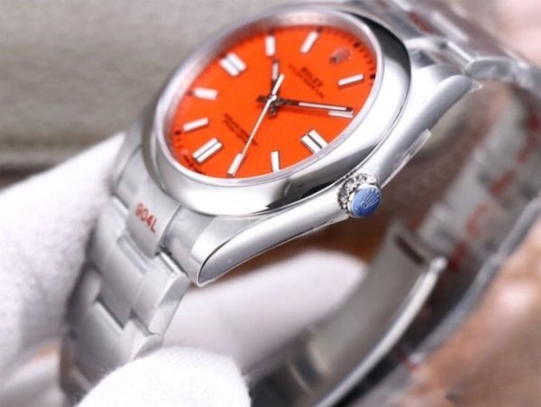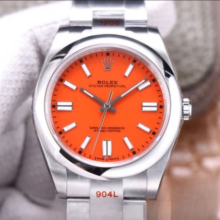 Rolex oyster perpetual orange dial scratch proof 41mm swiss replica m124300.0007 is taken in kind.