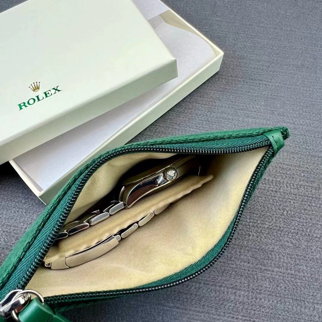 Enhance your collection with this exquisite Rolex green watch zip pouch, offering both protection and a touch of elegance for your cherished timepiece.