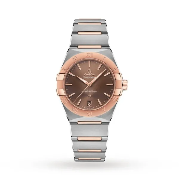 Omega Constellation Men Automatic Brown Stainless Steel & 18ct Gold Watch O13120362013001