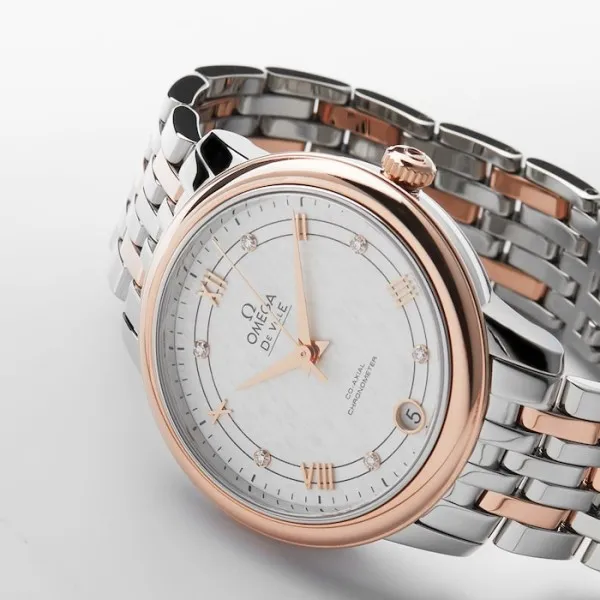 Be the first to review “Omega De Ville Women Automatic Mother of Pearl Stainless Steel & 18ct Rose Gold Watch O42420332052002”