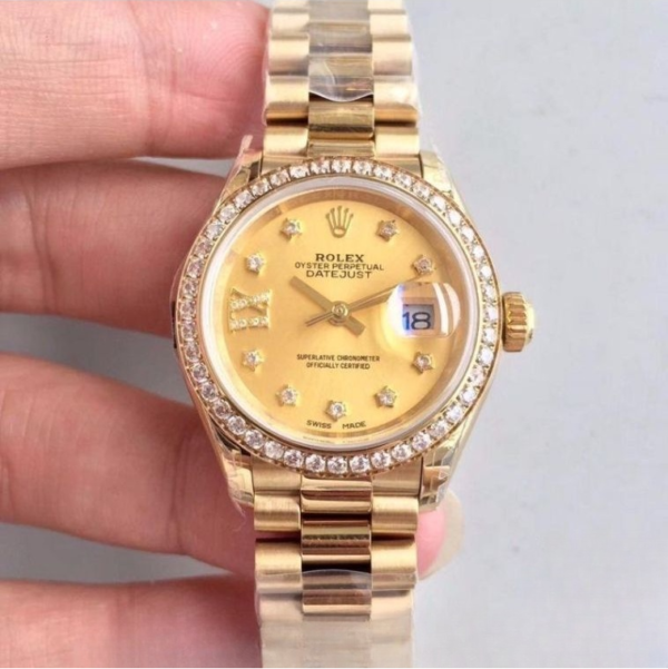 Rolex datejust gold dial 18k yellow gold 28mm swiss replica 279138rbr.1 is taken in kind.