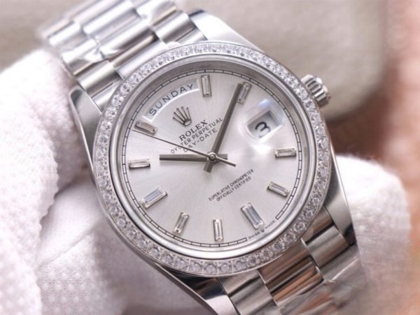 Rolex day date silver dial stainless steel 40mm swiss replica m228349rbr.0001 is taken in kind.